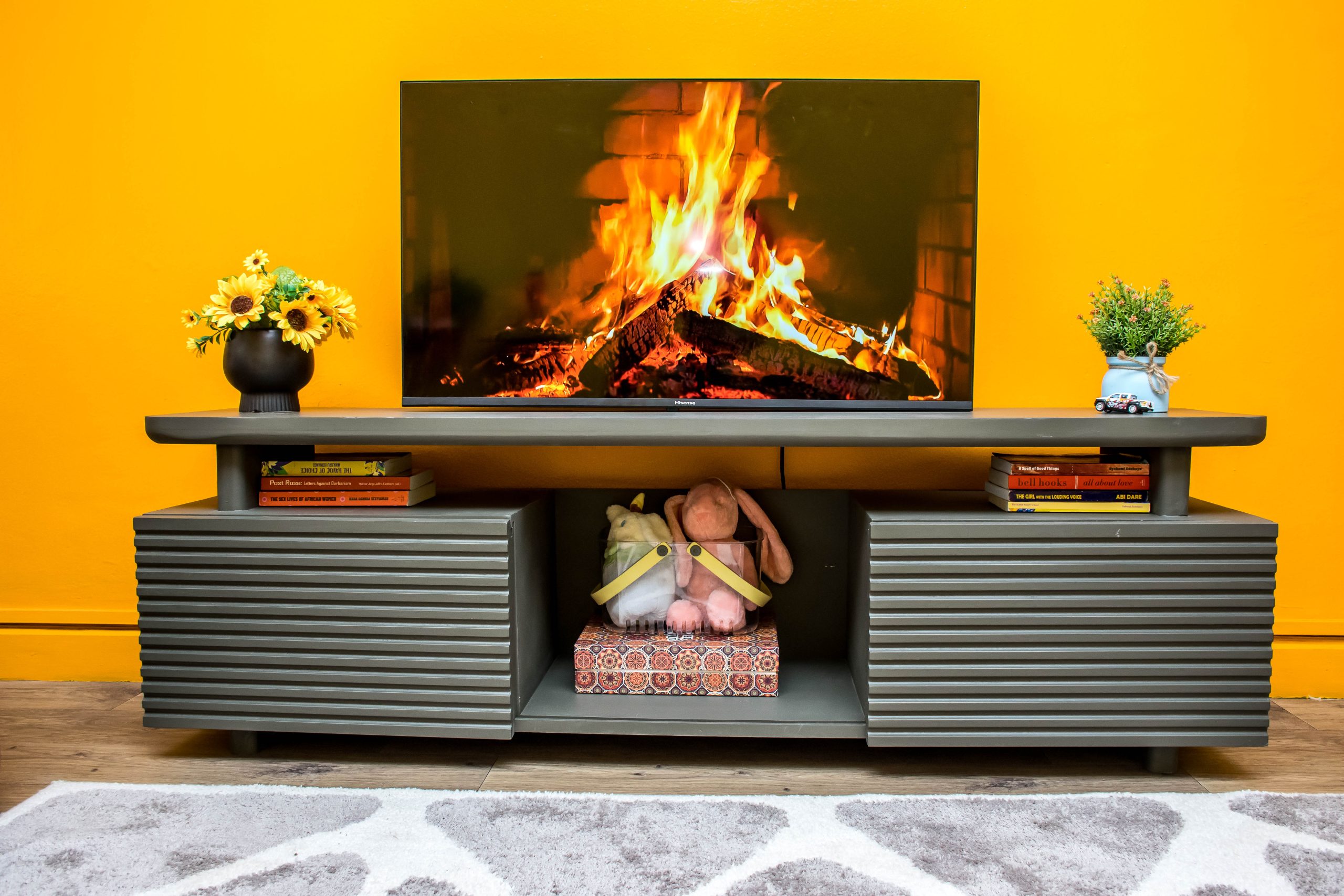 The Magic Doors TV Stand, is the right fresh, modern addition to your living room. It features unique sliding groove doors, an extra-long top for bigger TVs, four enclosed compartments for hidden storage, and open shelves for display. At 160cm, it offers more space than the standard stand while still fitting comfortably in your home. It comes with rounded corners, hidden cable management, and kid-friendly sliding doors, it’s designed to look great and make everyday living easier.